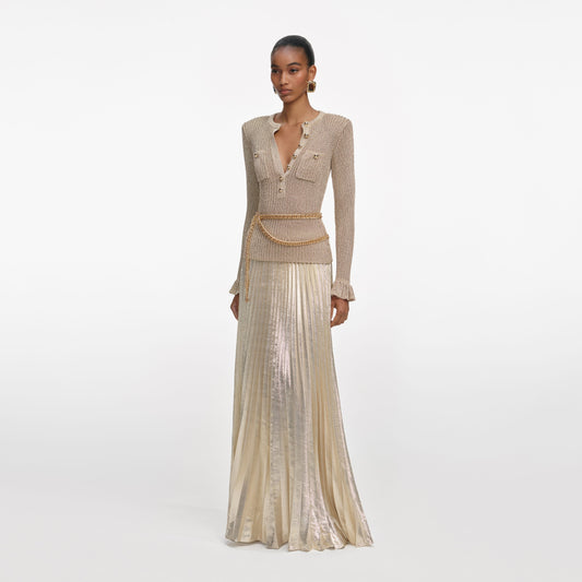 35% İndirimKhaki Lurex Örgü Uzun Elbise