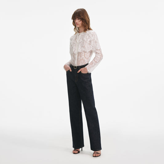 34% İndirimBeyaz Dantel Kontrast Yaka Üst