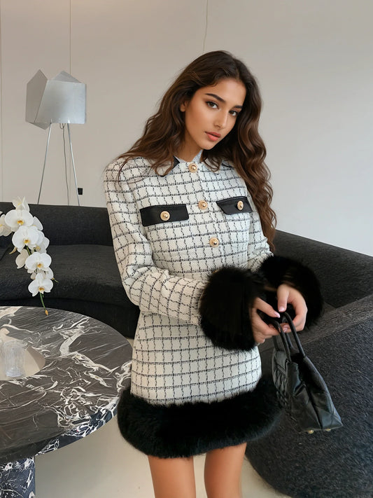 20% İndirimBeyaz Kareli Kürklü Ceket