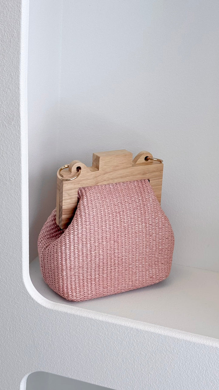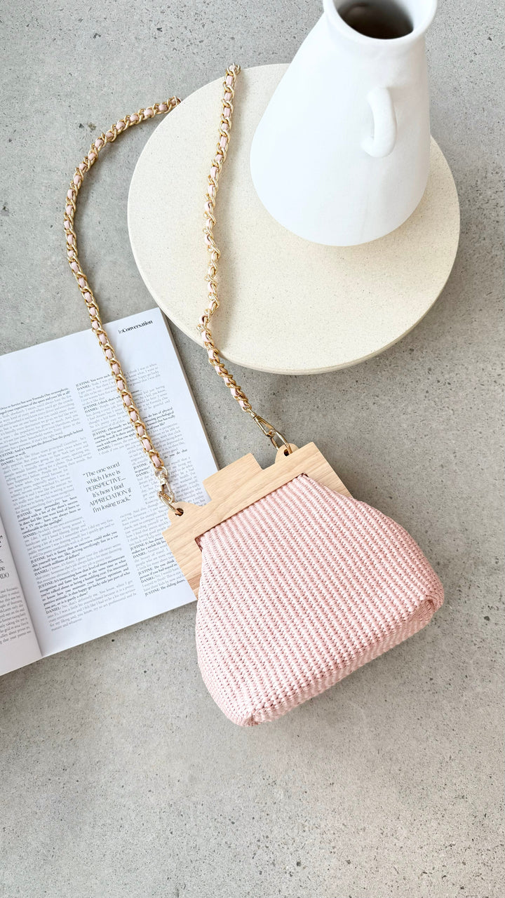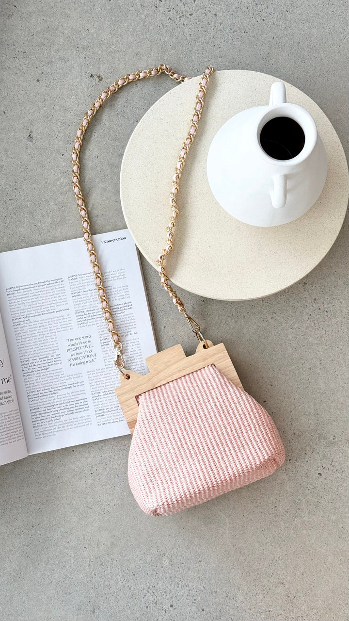 Abby Timber Frame Dokuma Mini Çanta - Soluk / Pembe
