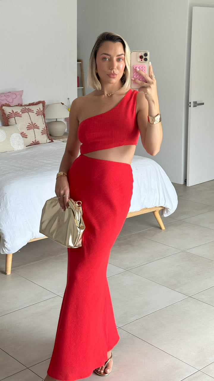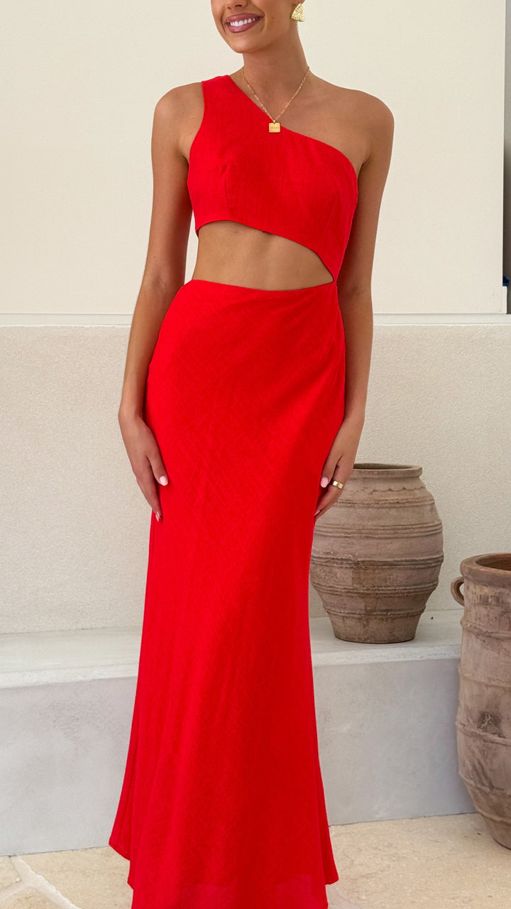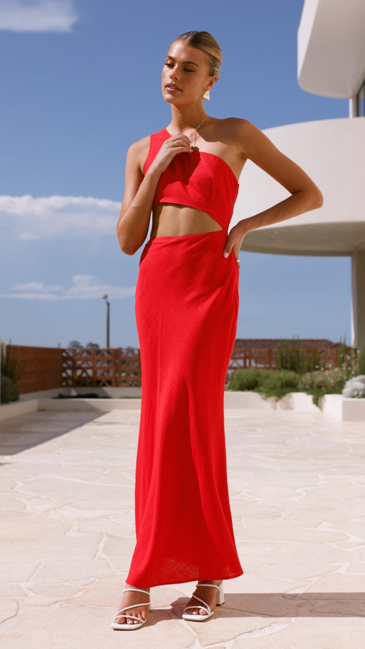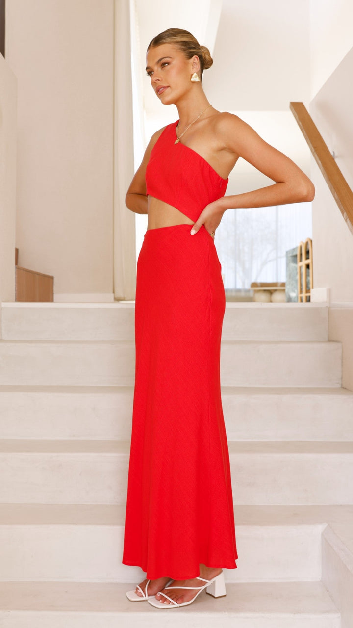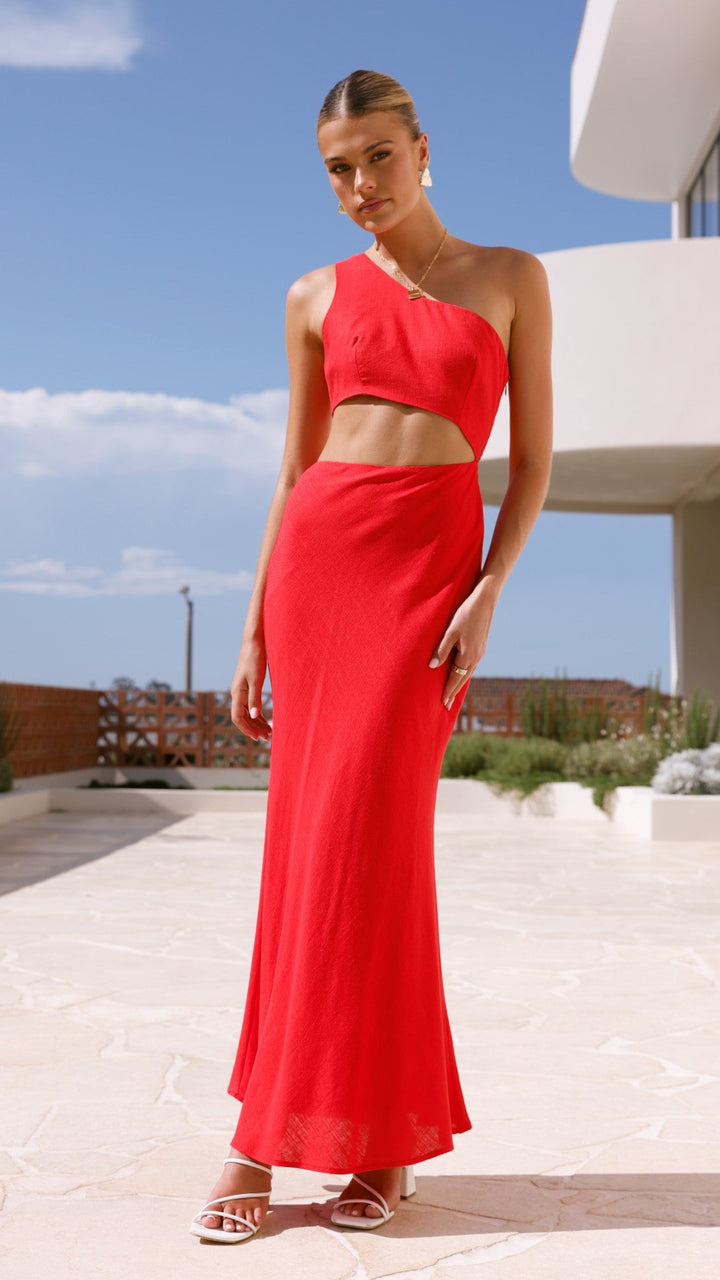Abia Uzun Elbise - Kırmızı