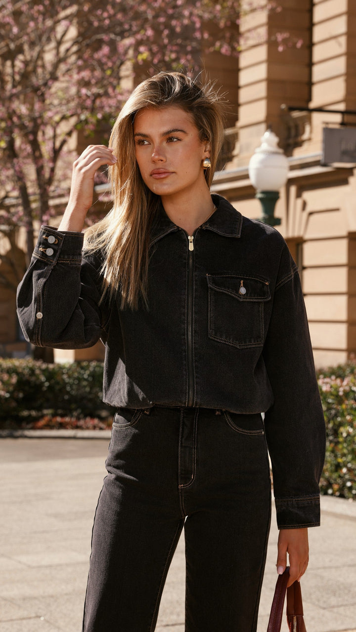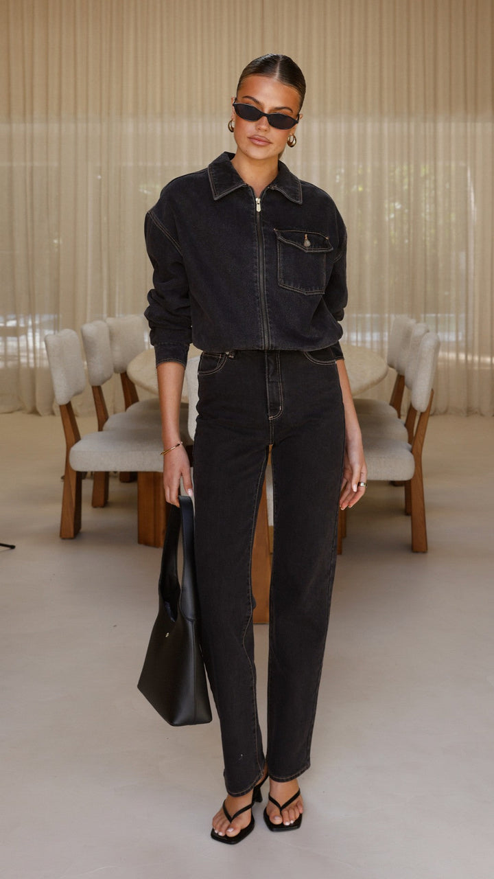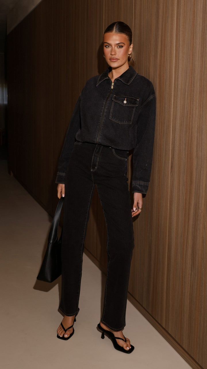 Abrand Denim Bomber Cara - Yıkanmış Siyah