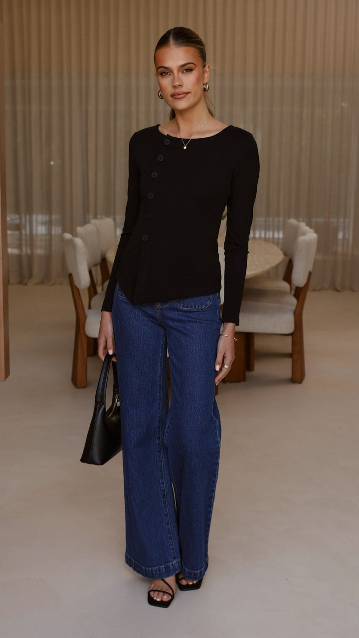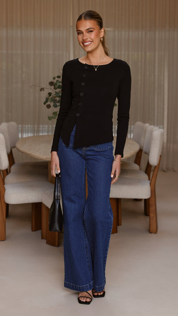 Addison Uzun Kollu Üst - Siyah
