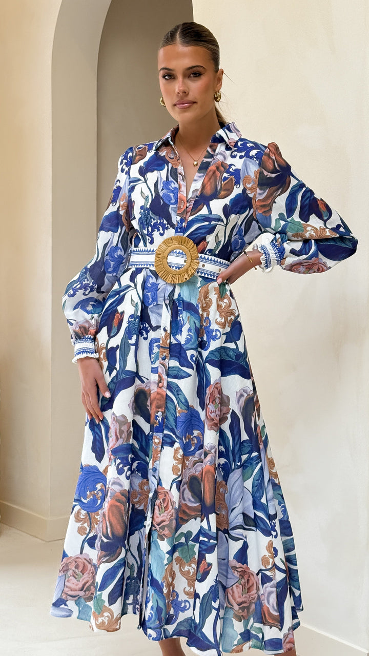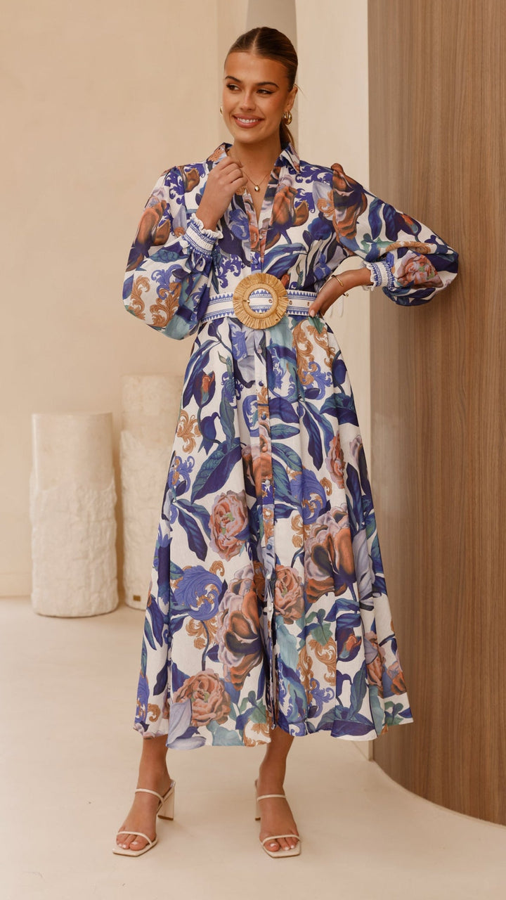 Aida Uzun Kollu Maksi Elbise - Azure Blue