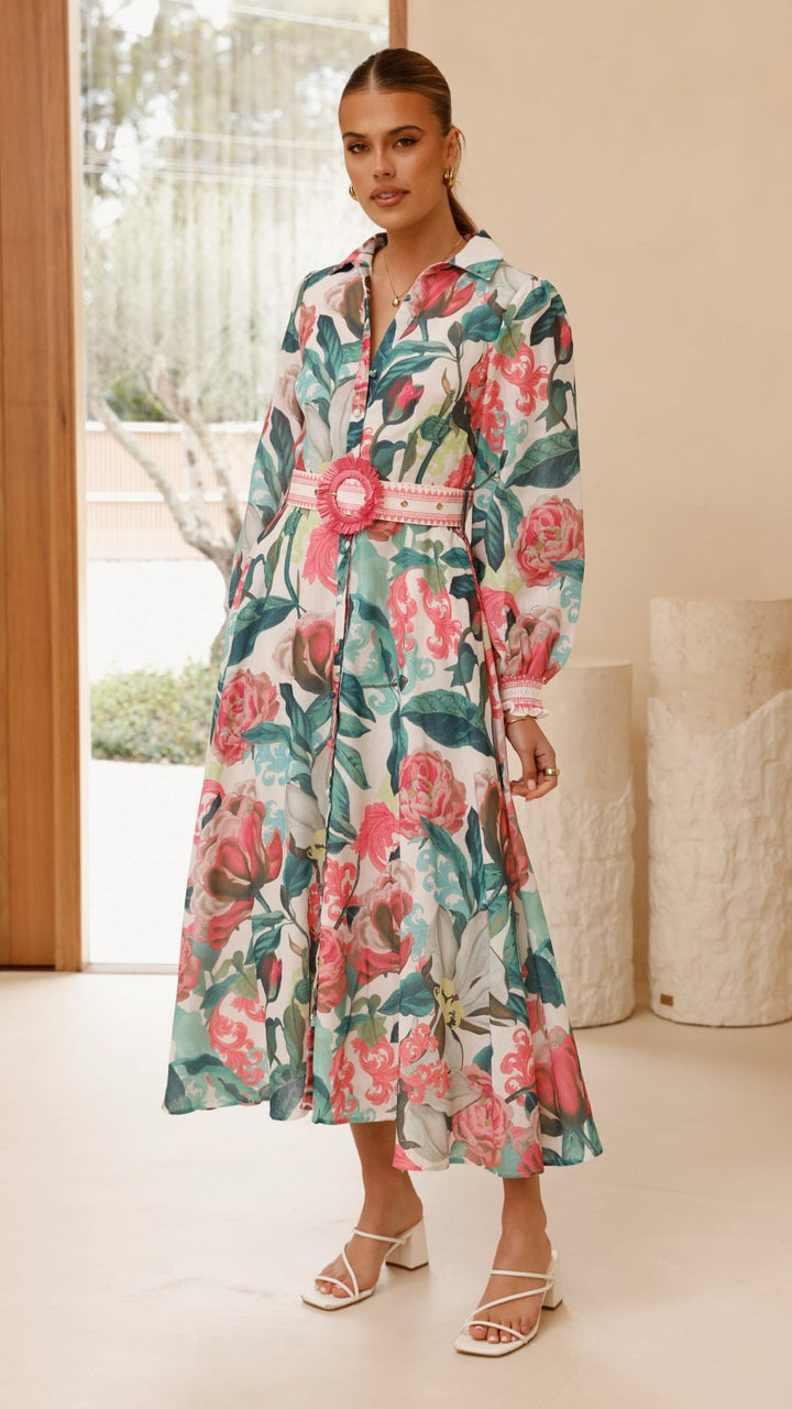 Aida Uzun Kollu Maksi Elbise - Spritz Pembesi