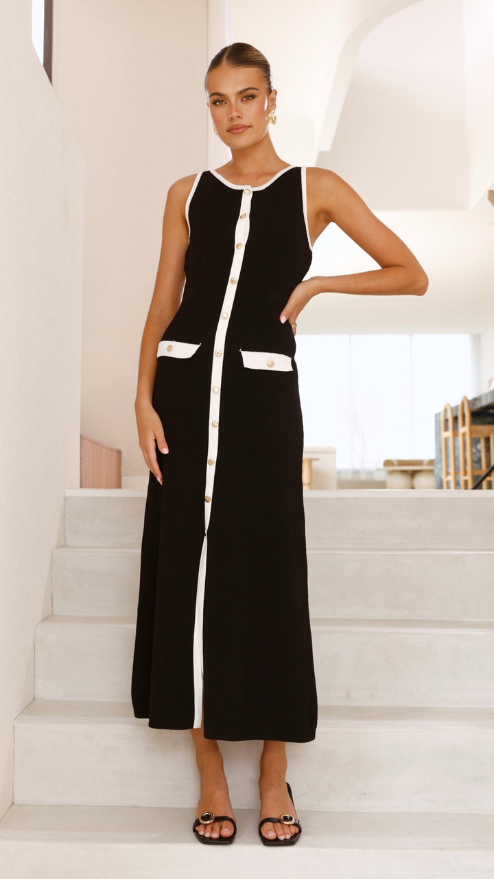 Antoinette Uzun Elbise - Siyah/Beyaz