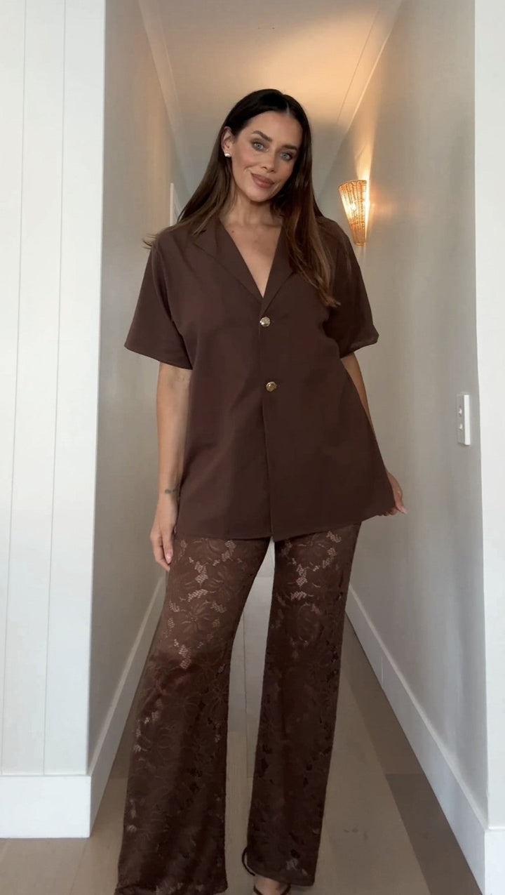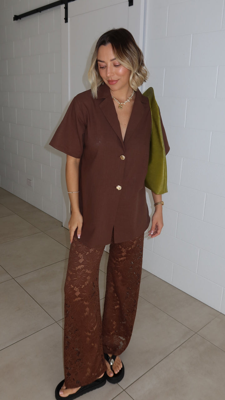 Azura Gömlek Ve Pantolon Takımı - Kahverengi