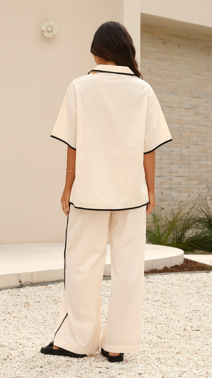 Basima Kravat Gömlek - Bej / Siyah