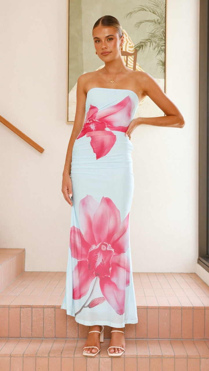 Brittani Straplez Uzun Elbise - Mavi/Pembe