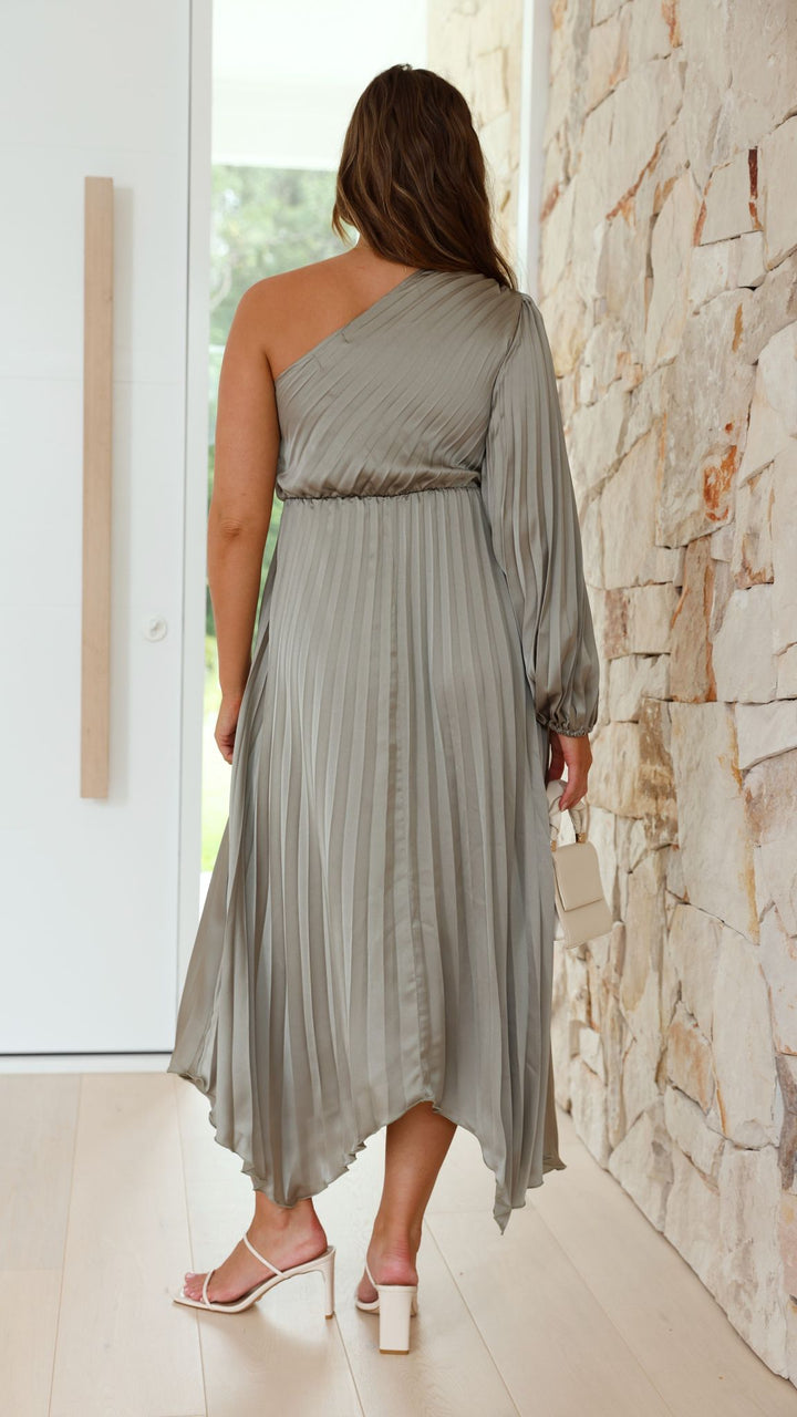 Brooklyn Tek Omuzlu Midi Elbise - Zeytin Yeşili