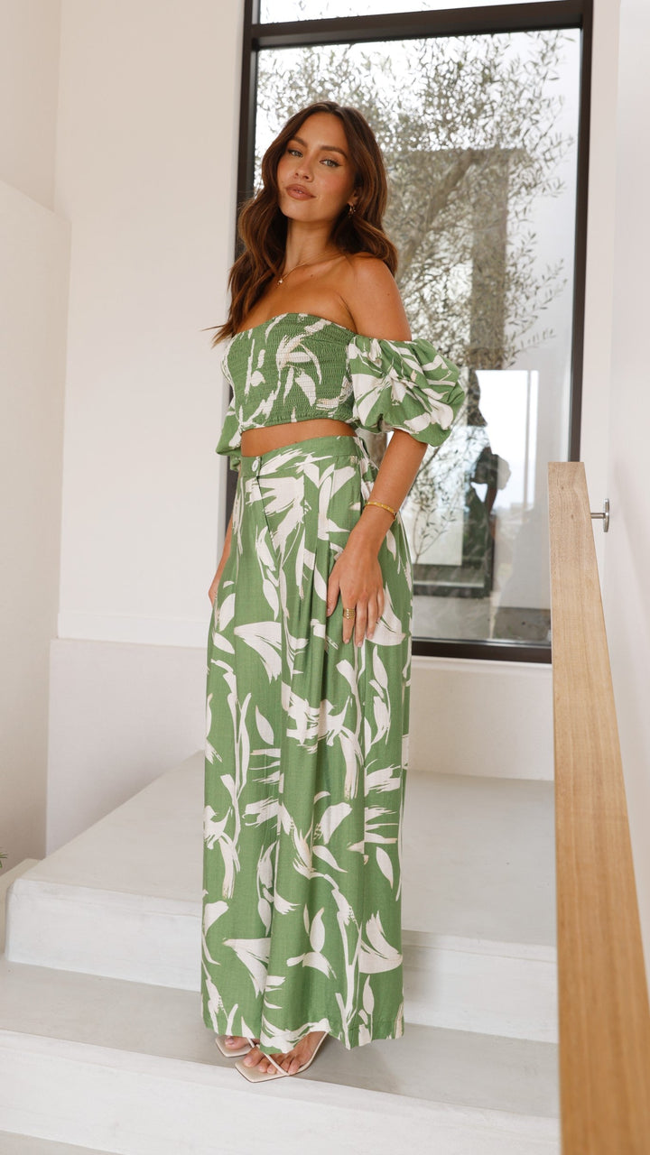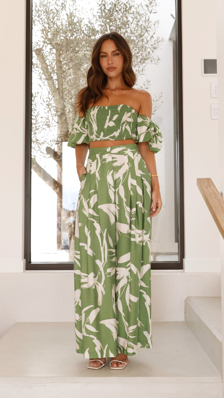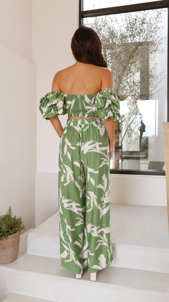 Callison Kısa Üst Ve Pantolon Takımı - Yeşil Baskılı