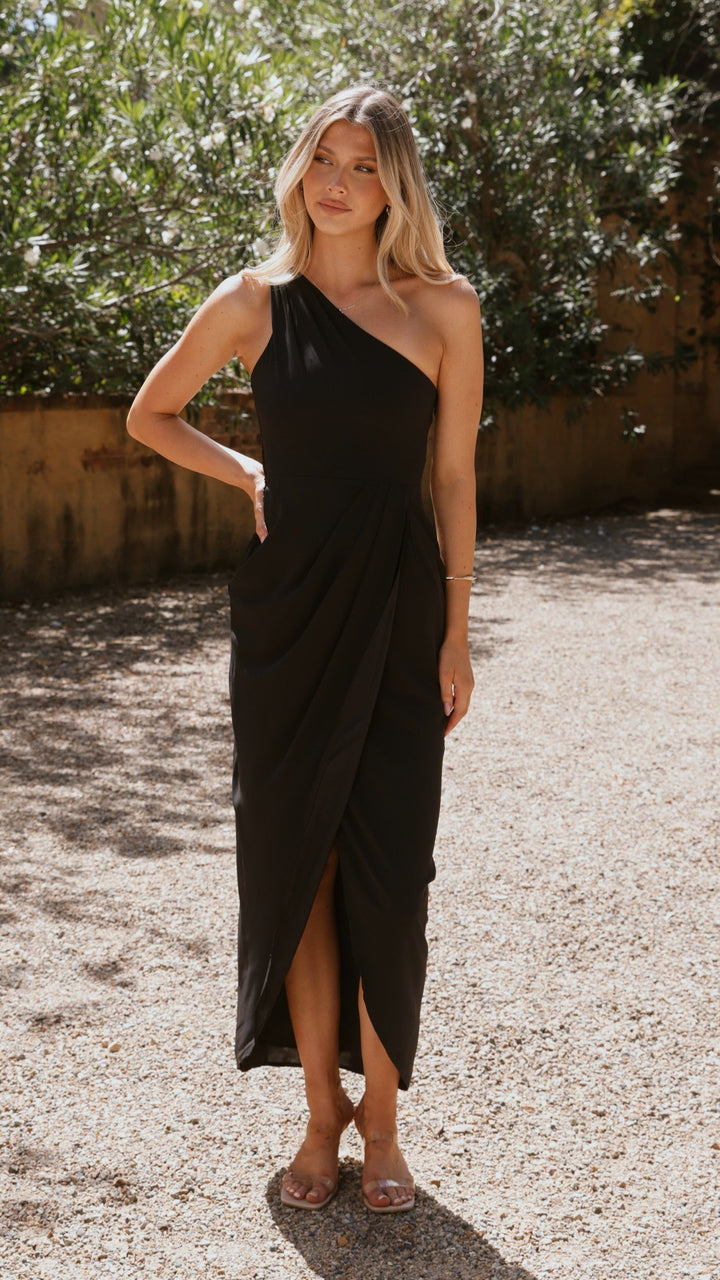 Clara Tek Omuzlu Uzun Elbise - Siyah