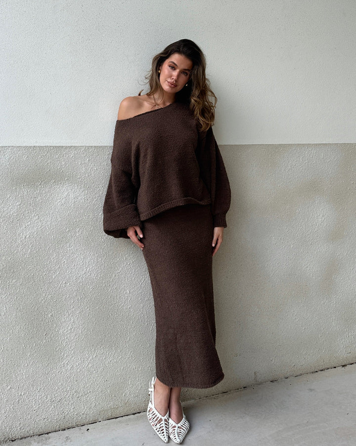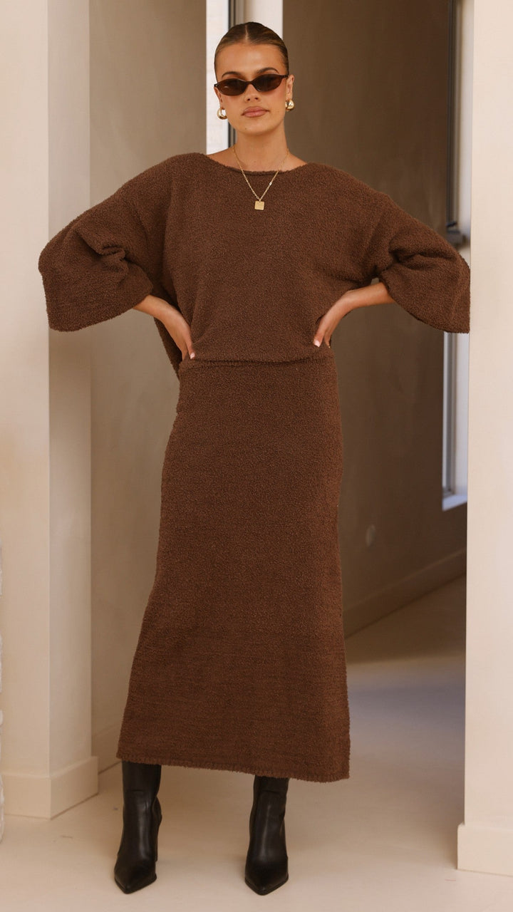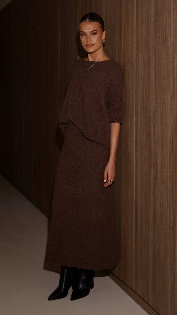 Cohen Örgü Midi Etek - Çikolata