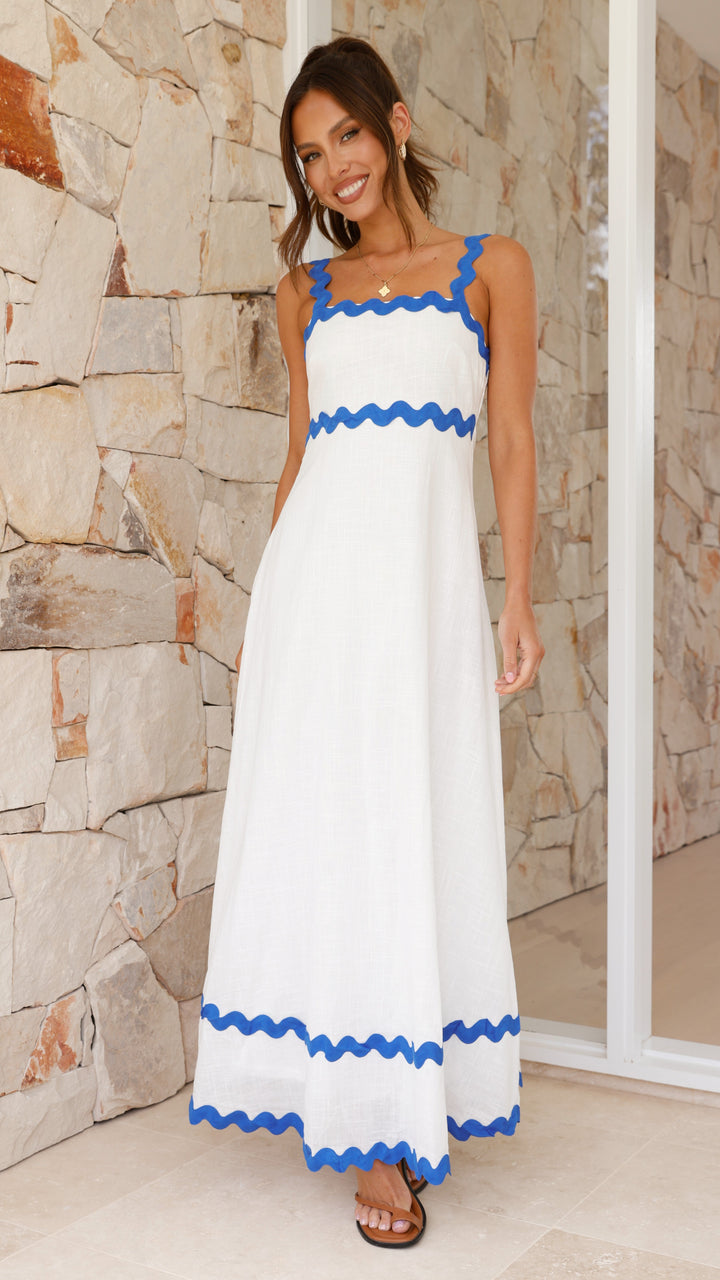 Daleyza Uzun Elbise - Beyaz / Mavi