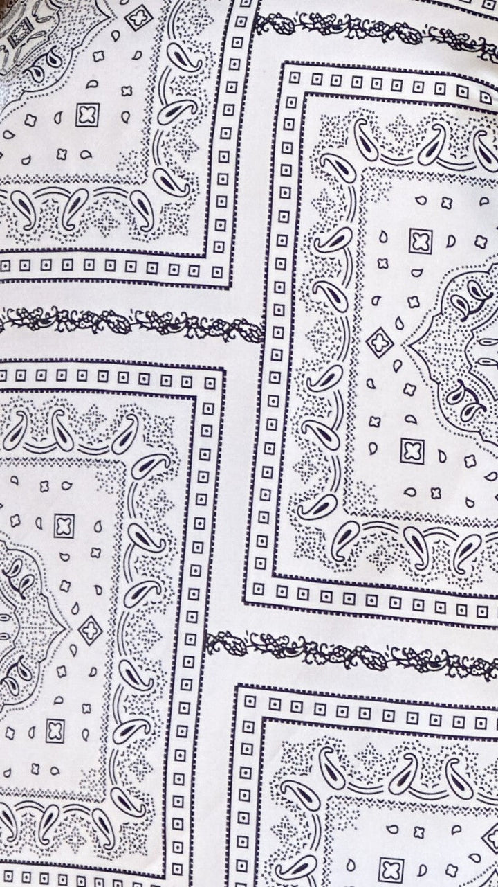 Dameka Pantolon - Beyaz / Siyah Baskılı