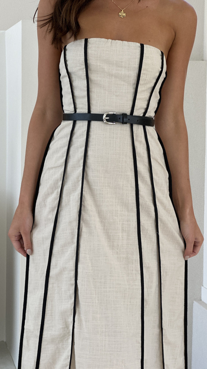 Damonica Uzun Elbise - Kum Rengi / Siyah