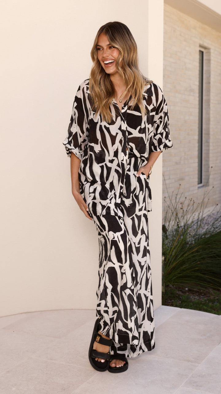 Ellis Düğmeli Gömlek - Siyah/Beyaz