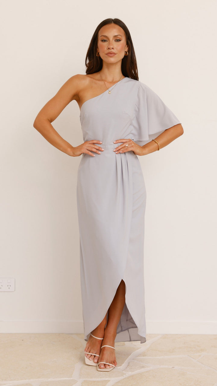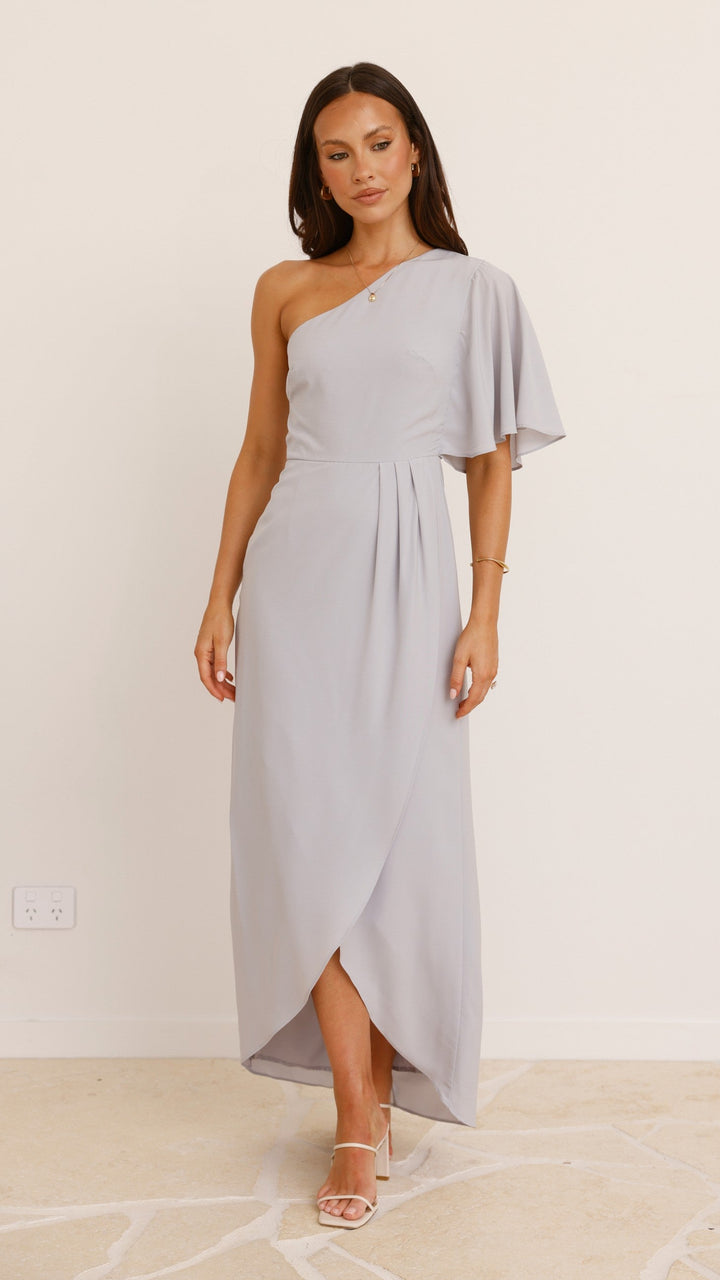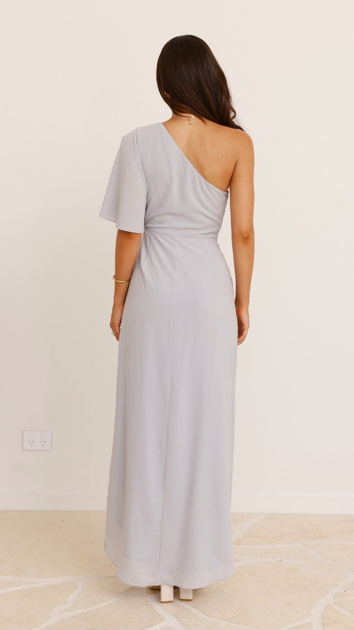 Emma Tek Kollu Uzun Elbise - Gümüş