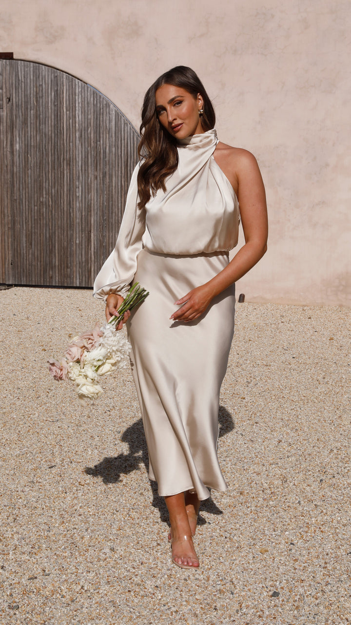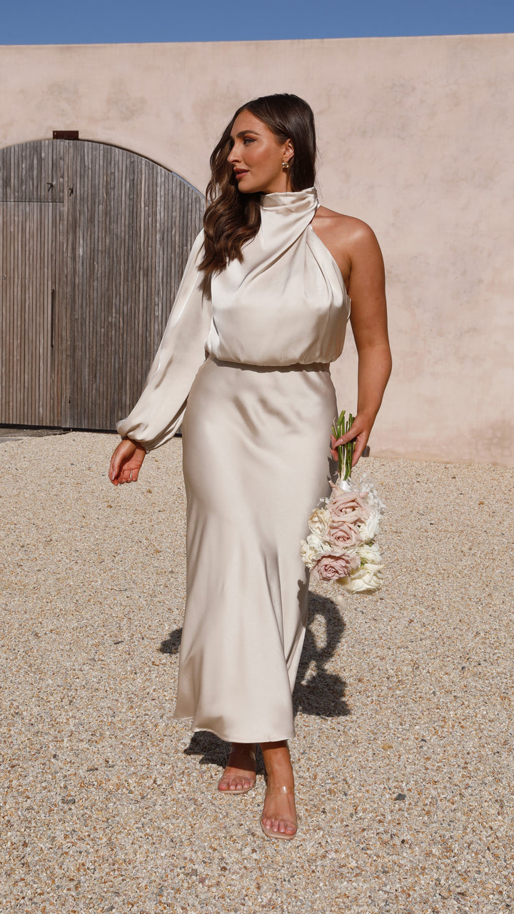 Esther Tek Omuzlu Uzun Kollu Elbise - Şampanya
