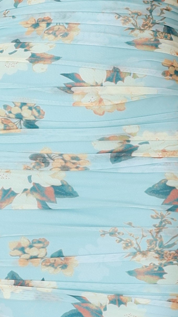 Faizah Midi Elbise - Mavi / Sarı Çiçek Desenli