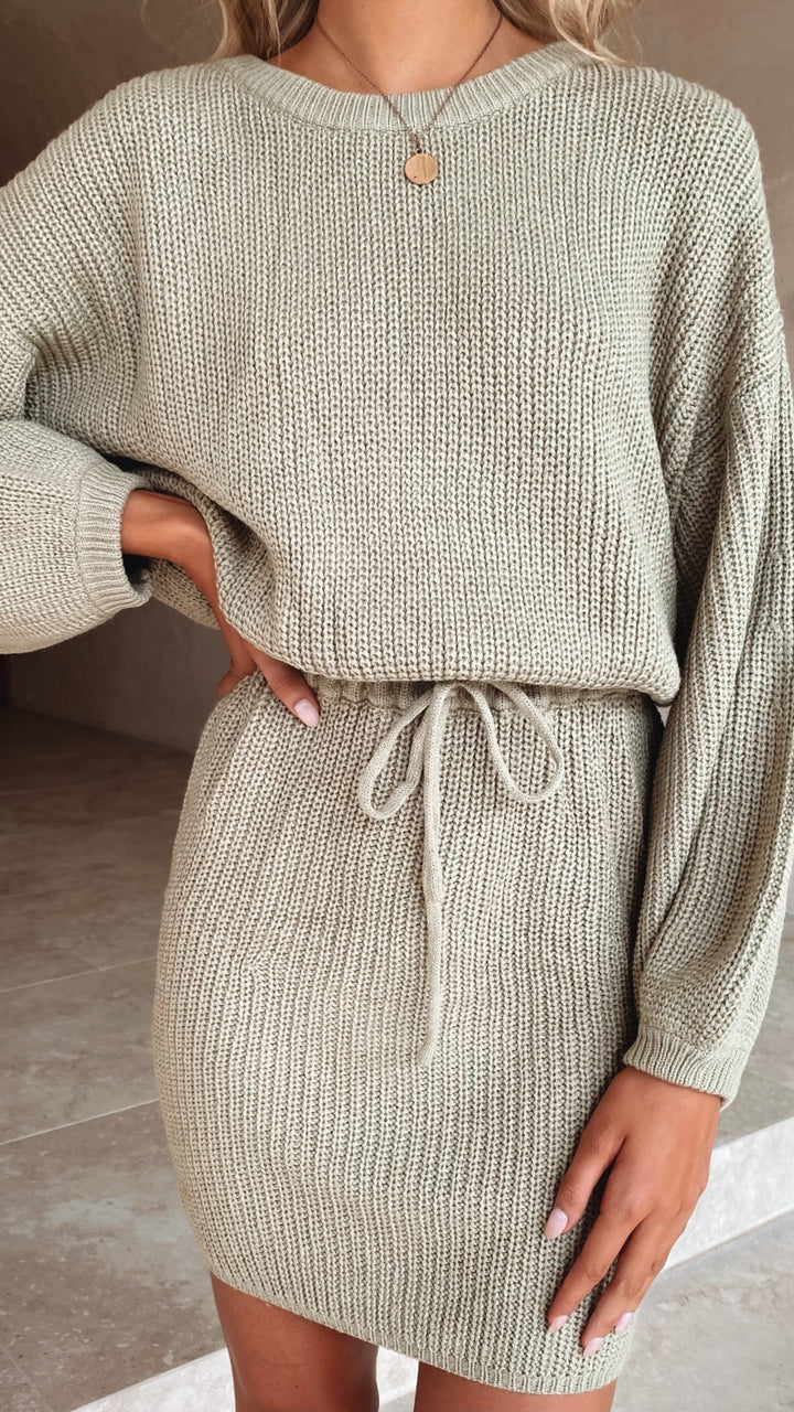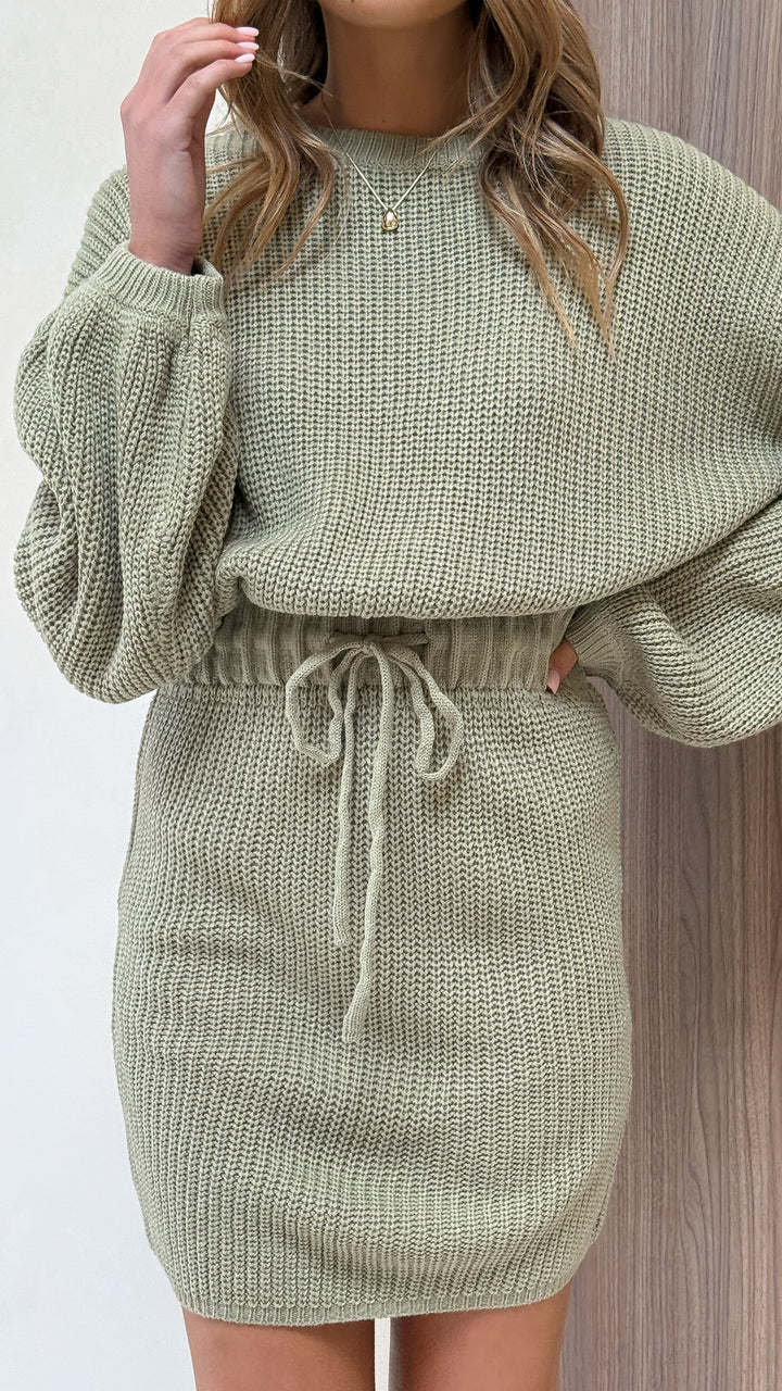 Feya Örgü Mini Elbise - Zeytin Yeşili