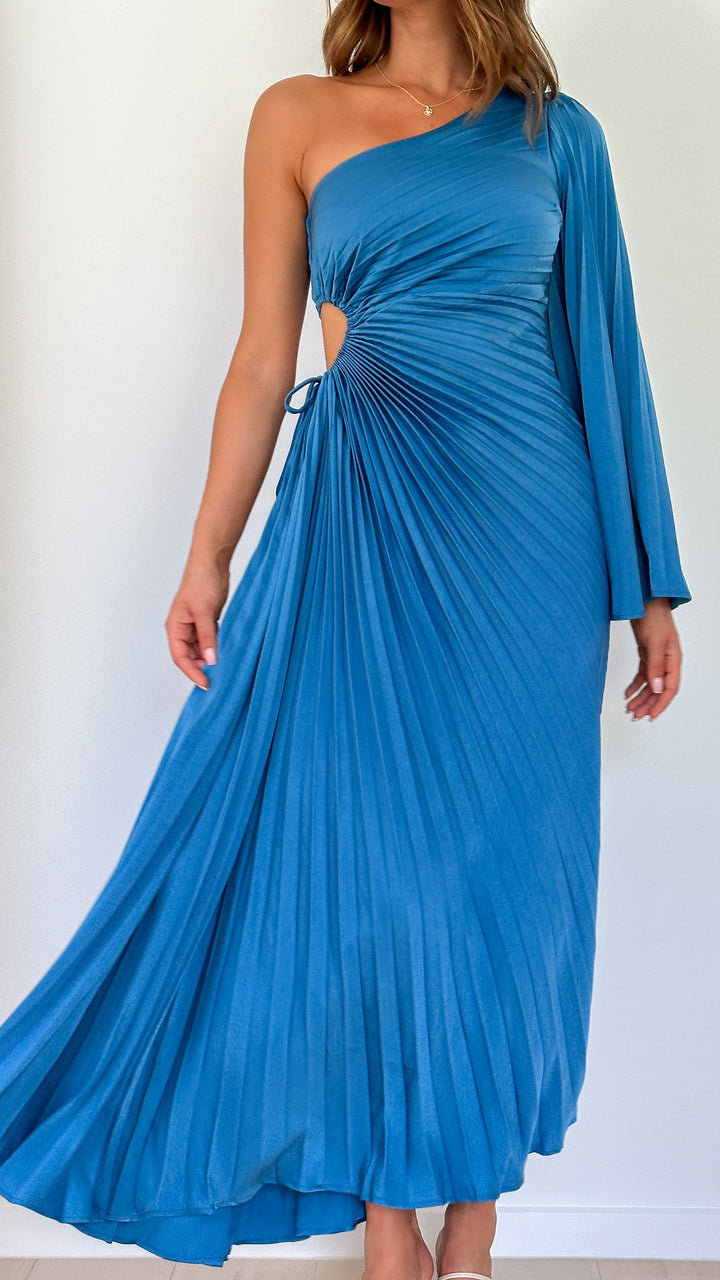 Gwen Tek Omuzlu Uzun Elbise - Mavi