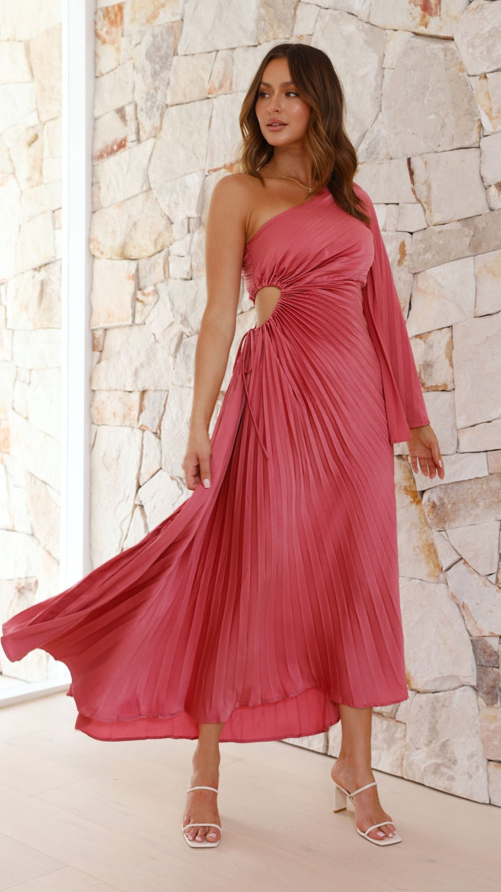 Gwen Tek Omuzlu Uzun Elbise - Pembe