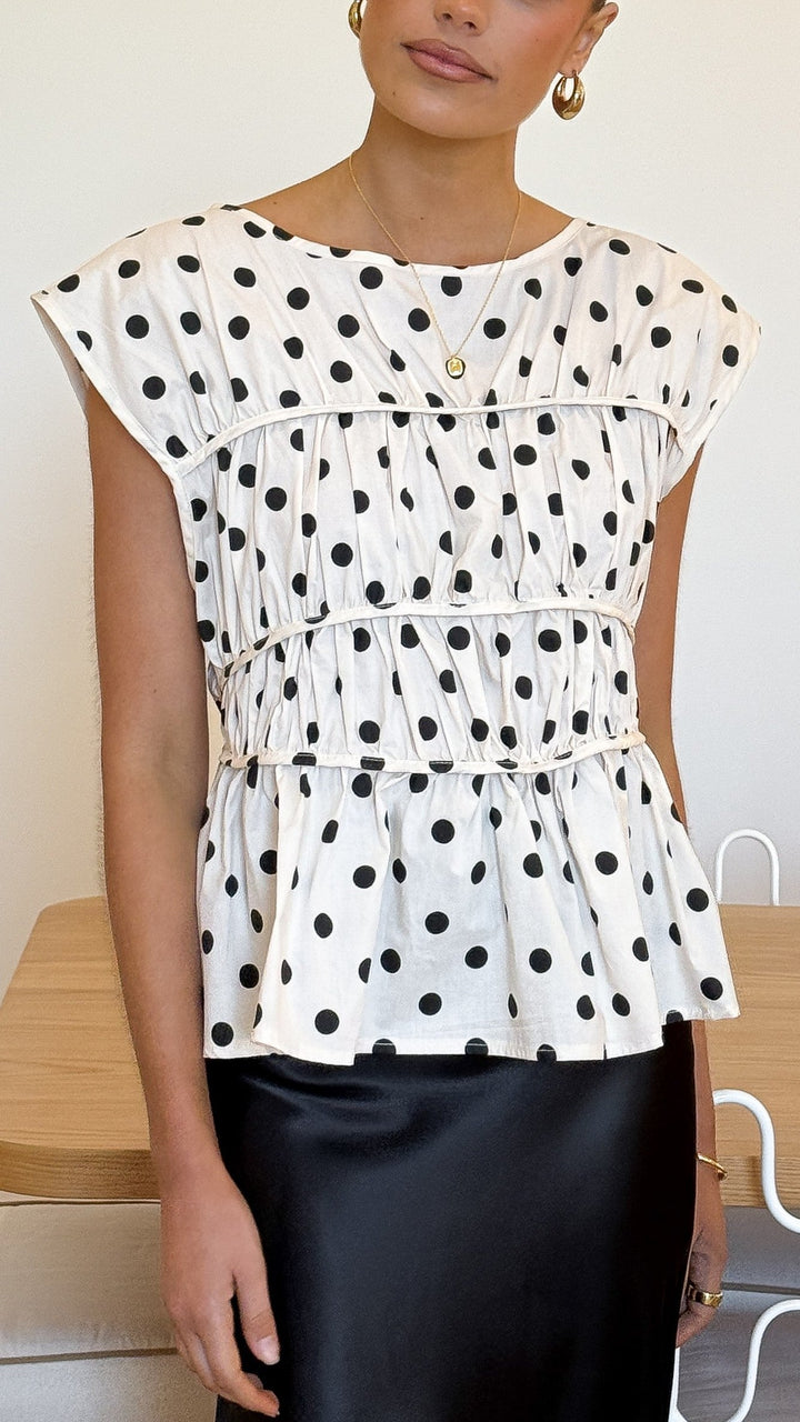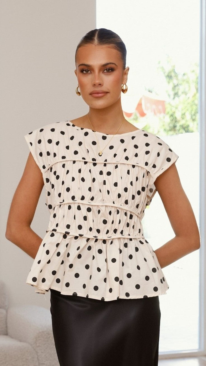 Harmonia Üst - Krem/Siyah Puantiyeli