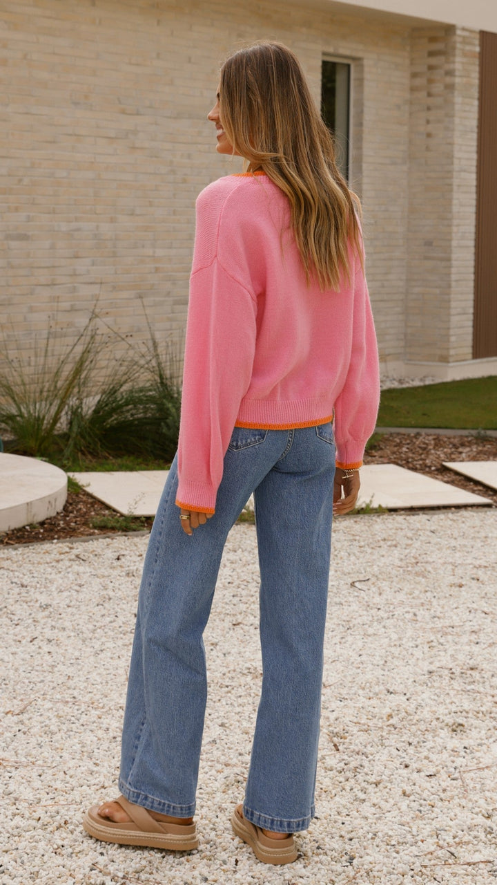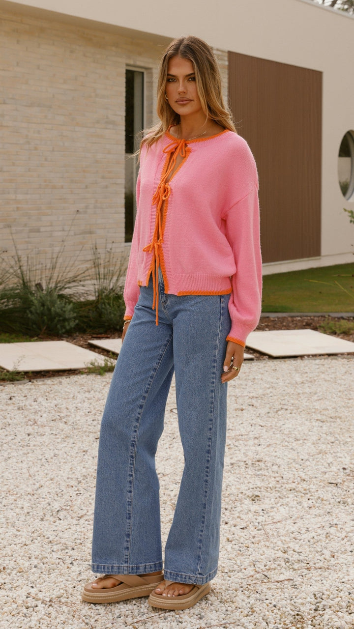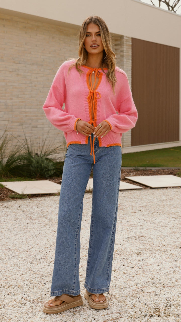 Hazina Kravat Uzun Kollu Örgü Üst - Pembe / Turuncu