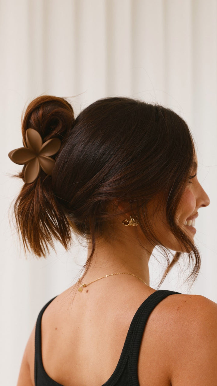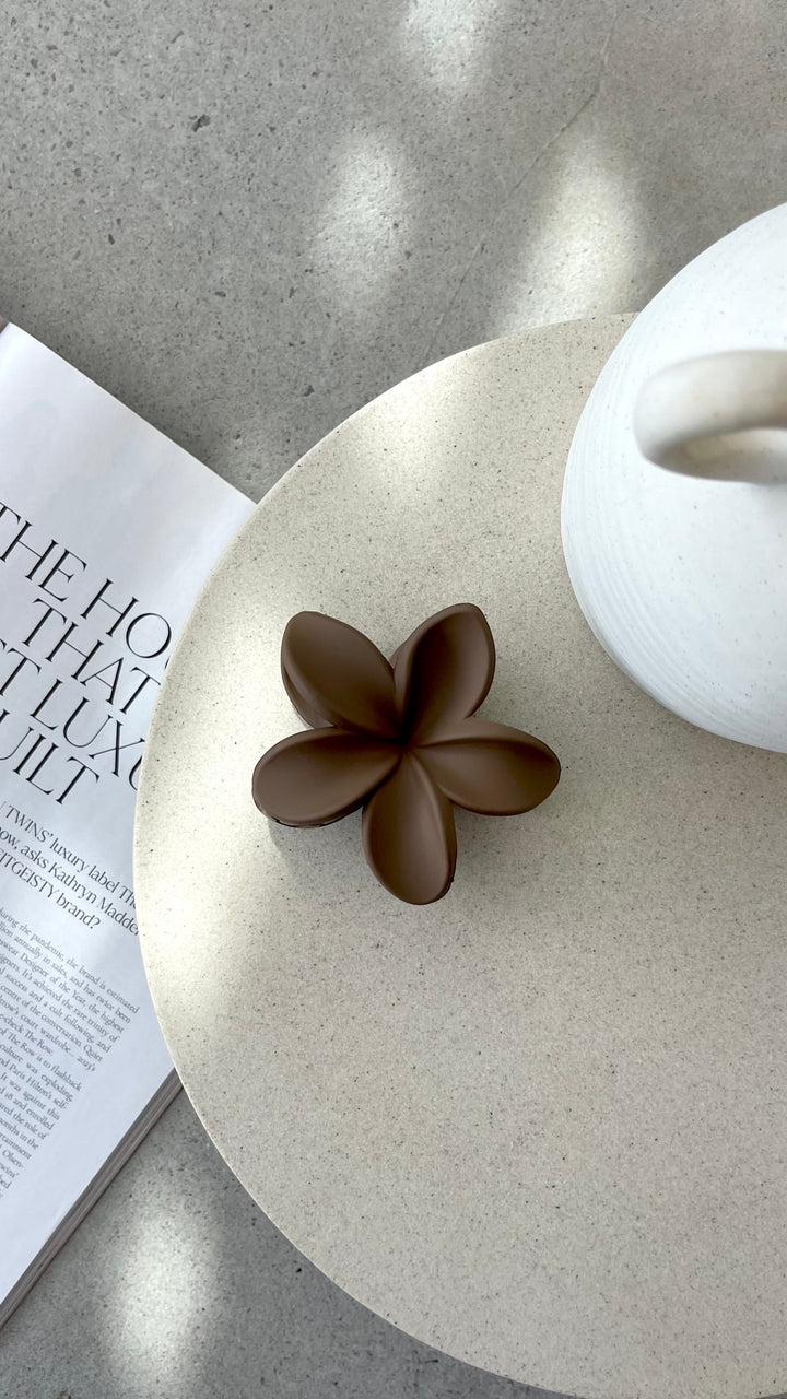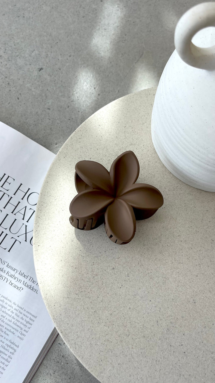 Hibiscus Mat Çiçek Pençe Klipsi - Kahverengi