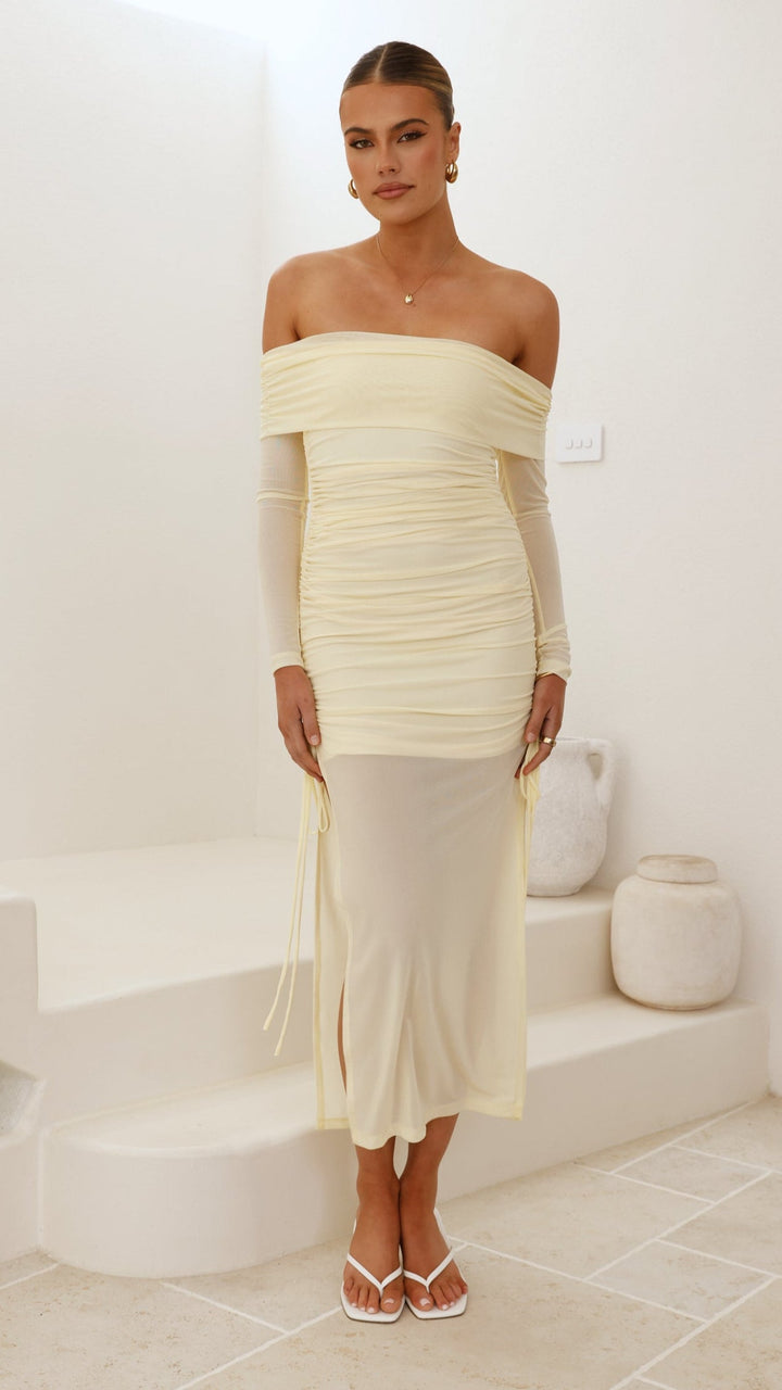 Isadora Omuz Açık Uzun Elbise - Sarı