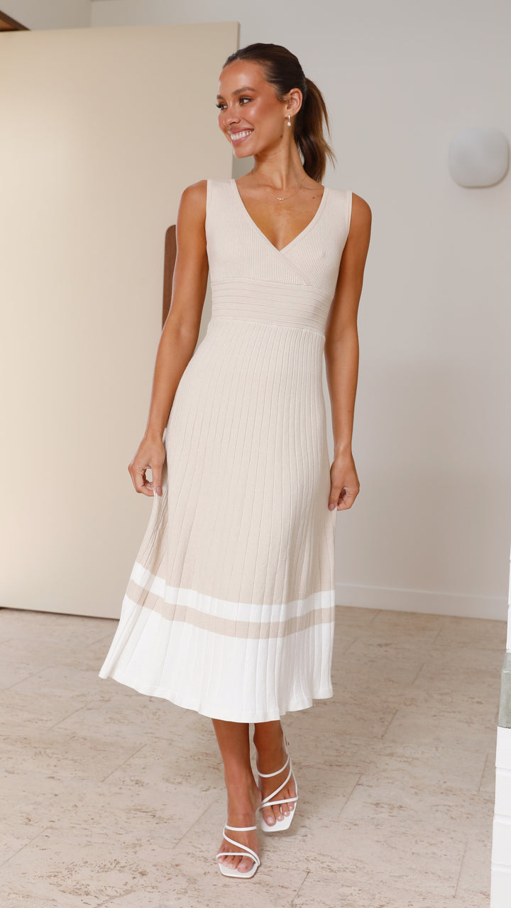 Jayde Örgü Elbise - Bej/Beyaz