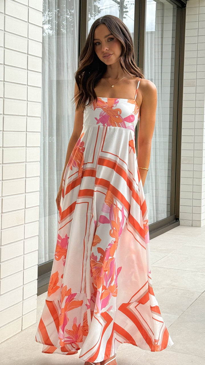 Kaethe Uzun Elbise - Turuncu/Beyaz