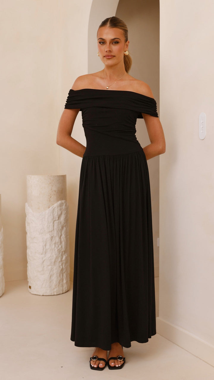 Manalla Uzun Elbise - Siyah
