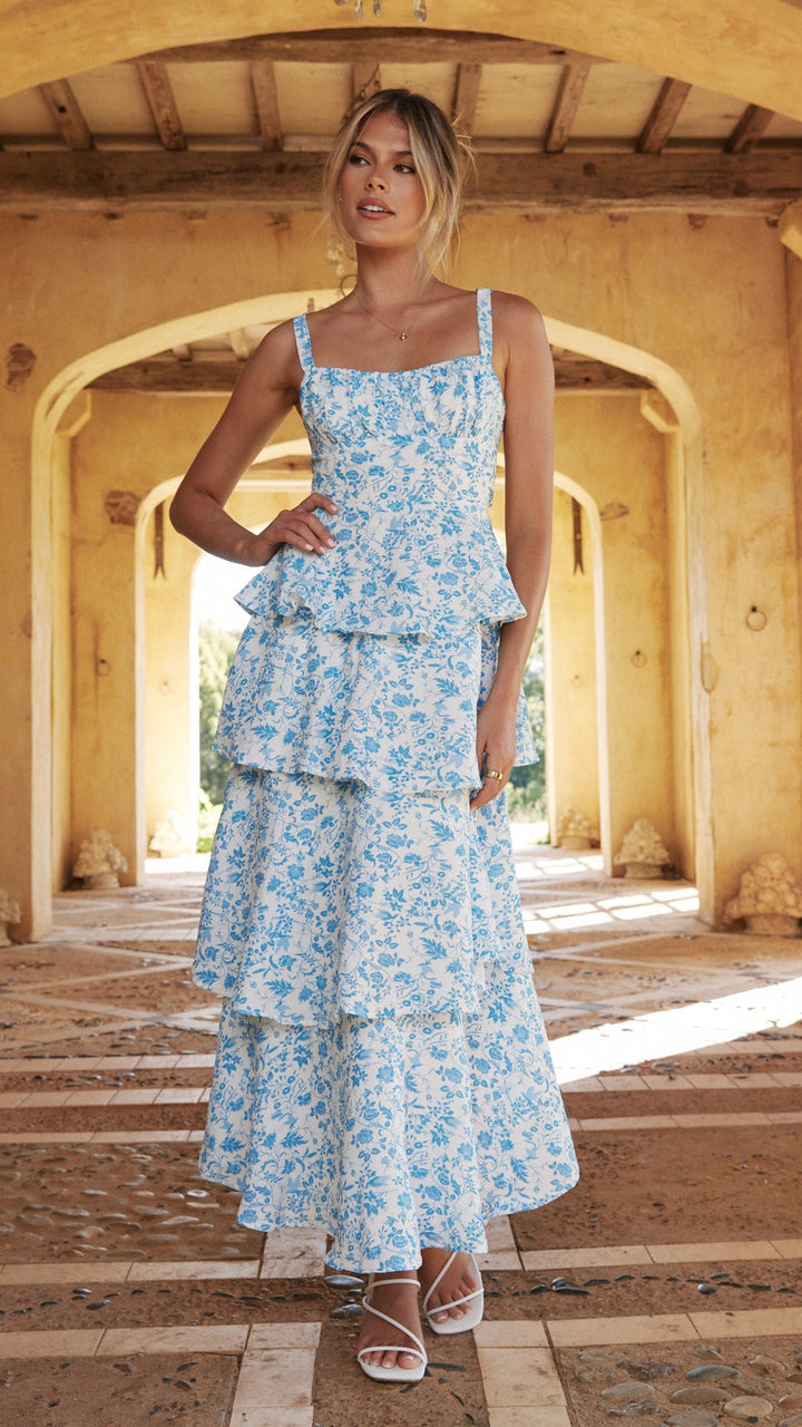 Page Maxi Elbise - Mavi Çiçekli