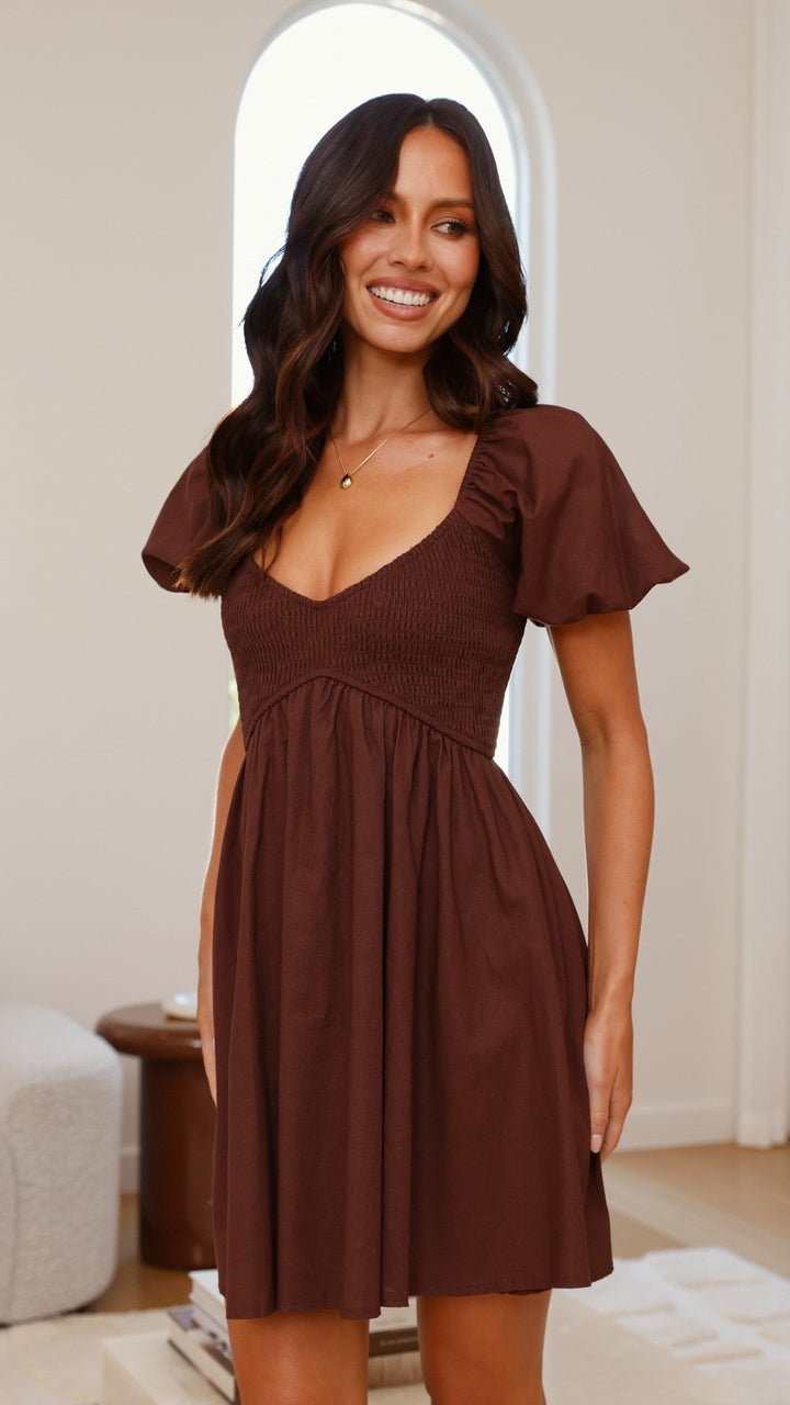 Sahirah Mini Elbise - Kahverengi