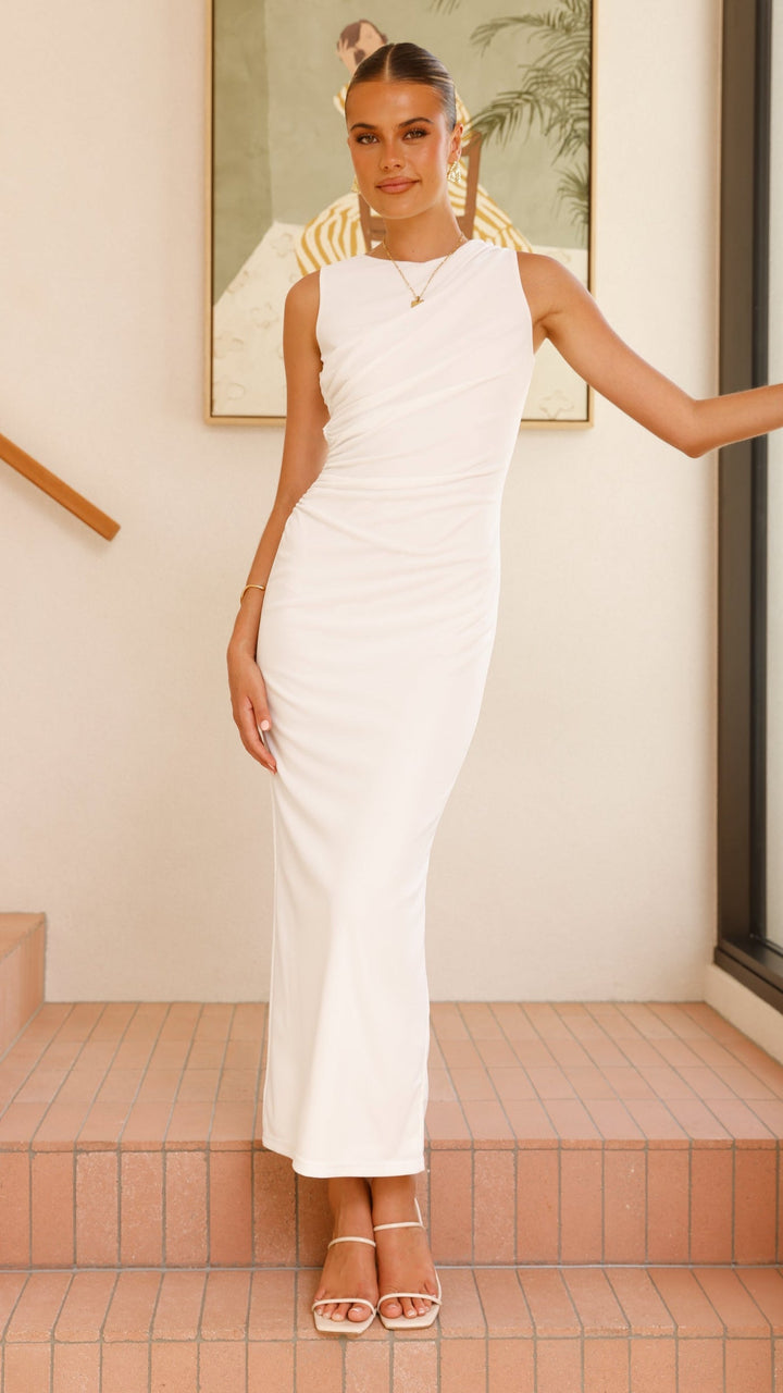 Sarsha Boatneck Uzun Elbise - Beyaz