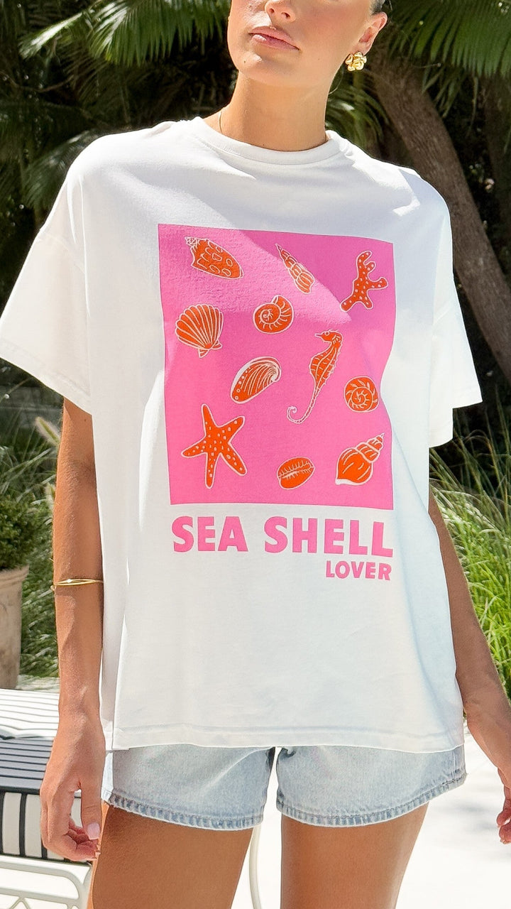 Deniz Kabuğu Sever Tişört - Beyaz