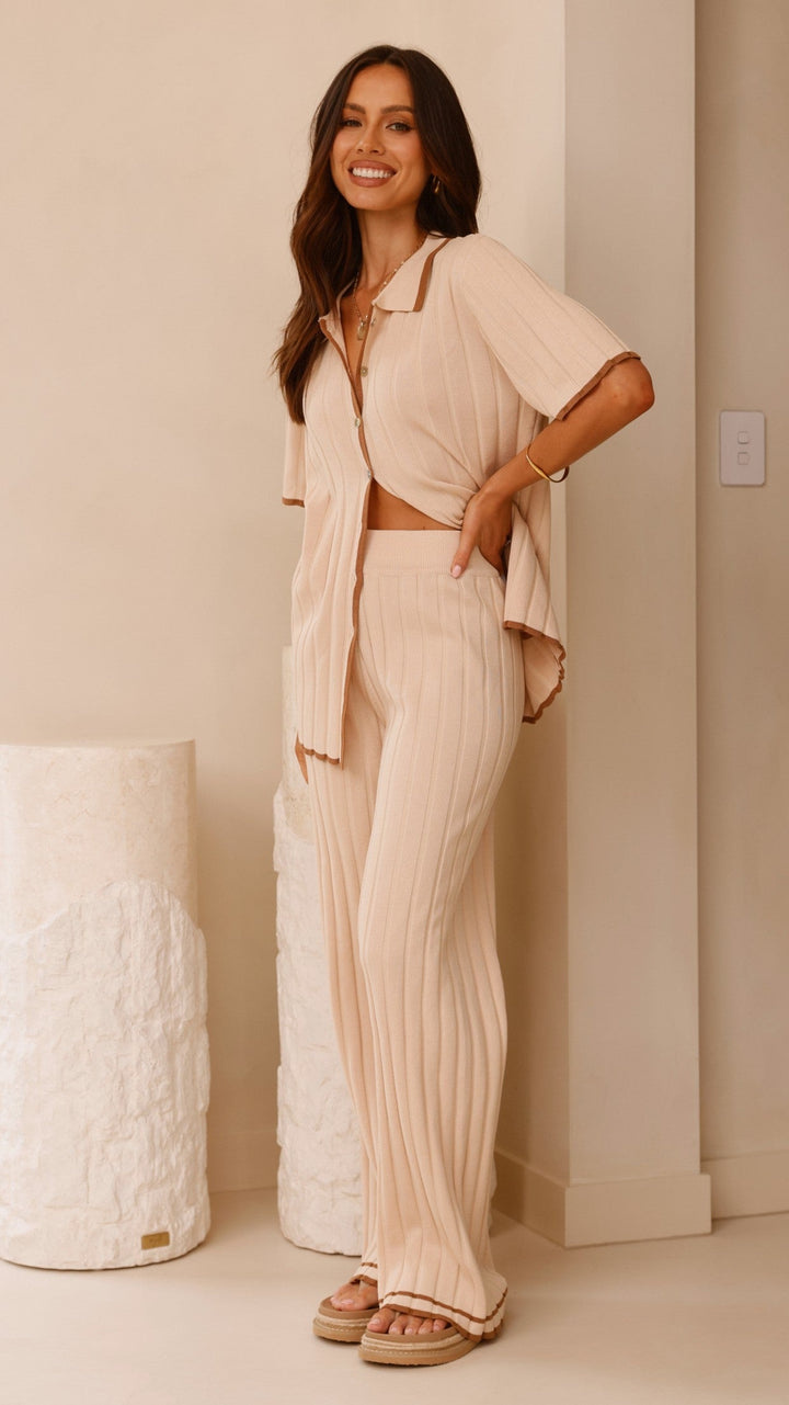 Shaylie Geniş Paça Pantolon - Bej