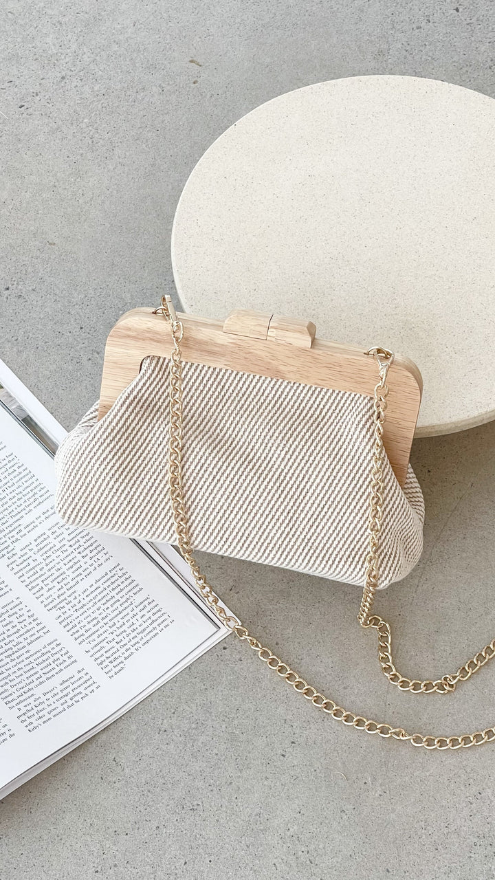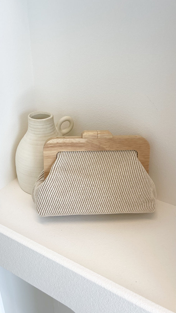 Tessa Fabric Weave Ahşap Çerçeve Çanta - Deve Tüyü / Doğal