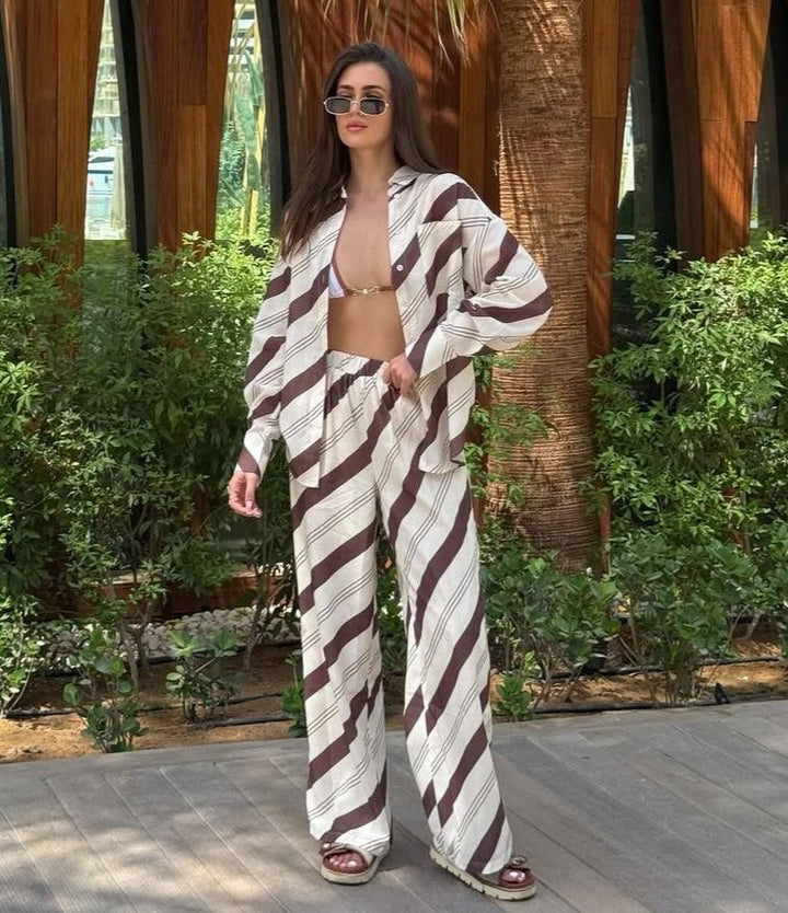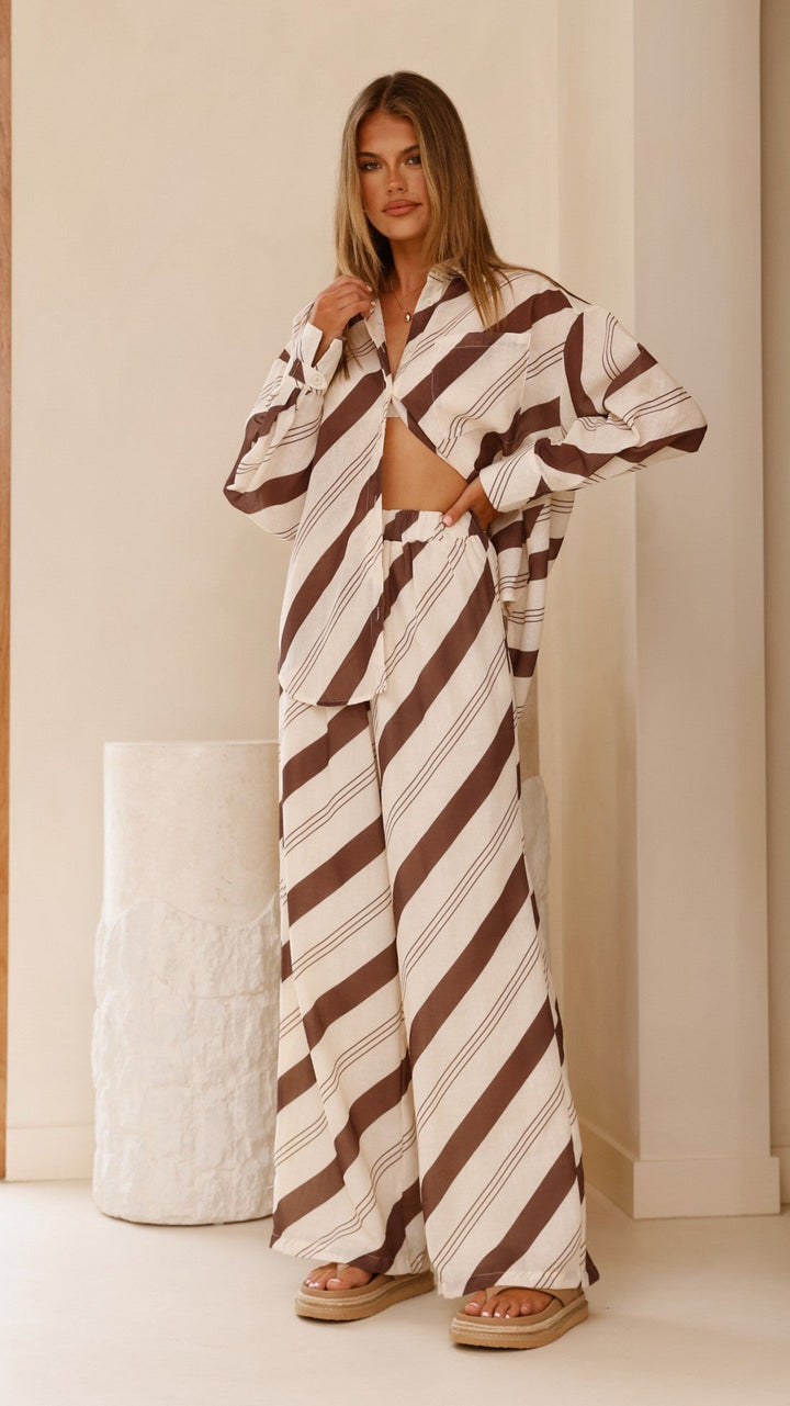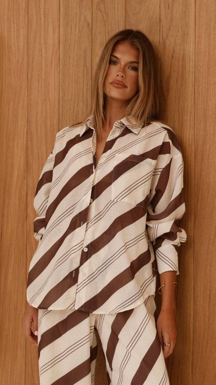 Torrey Düğmeli Uzun Kollu Gömlek - Krem/Kakao