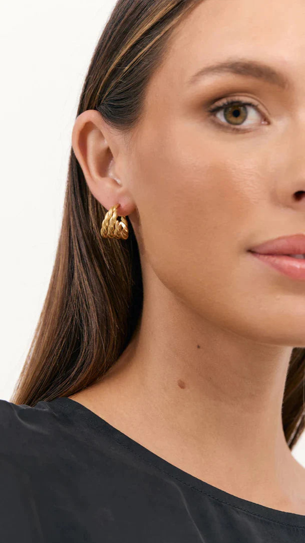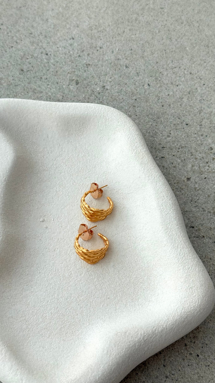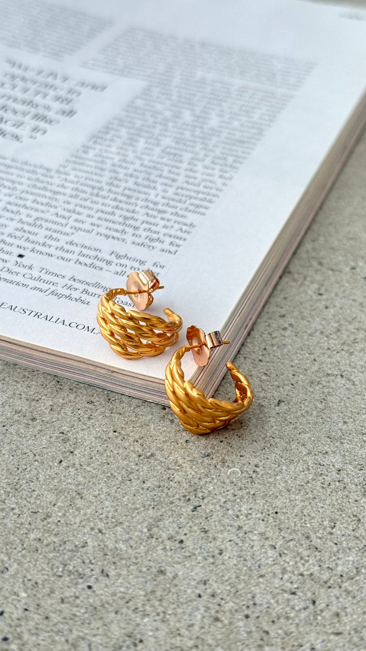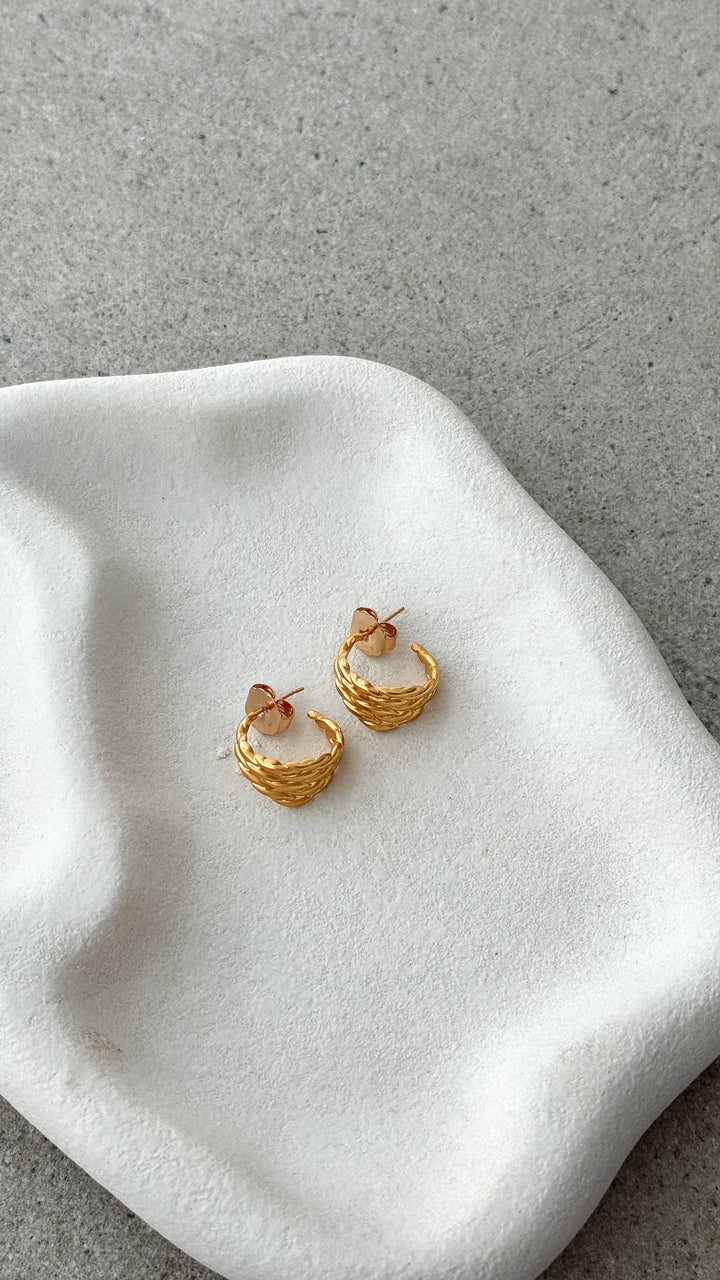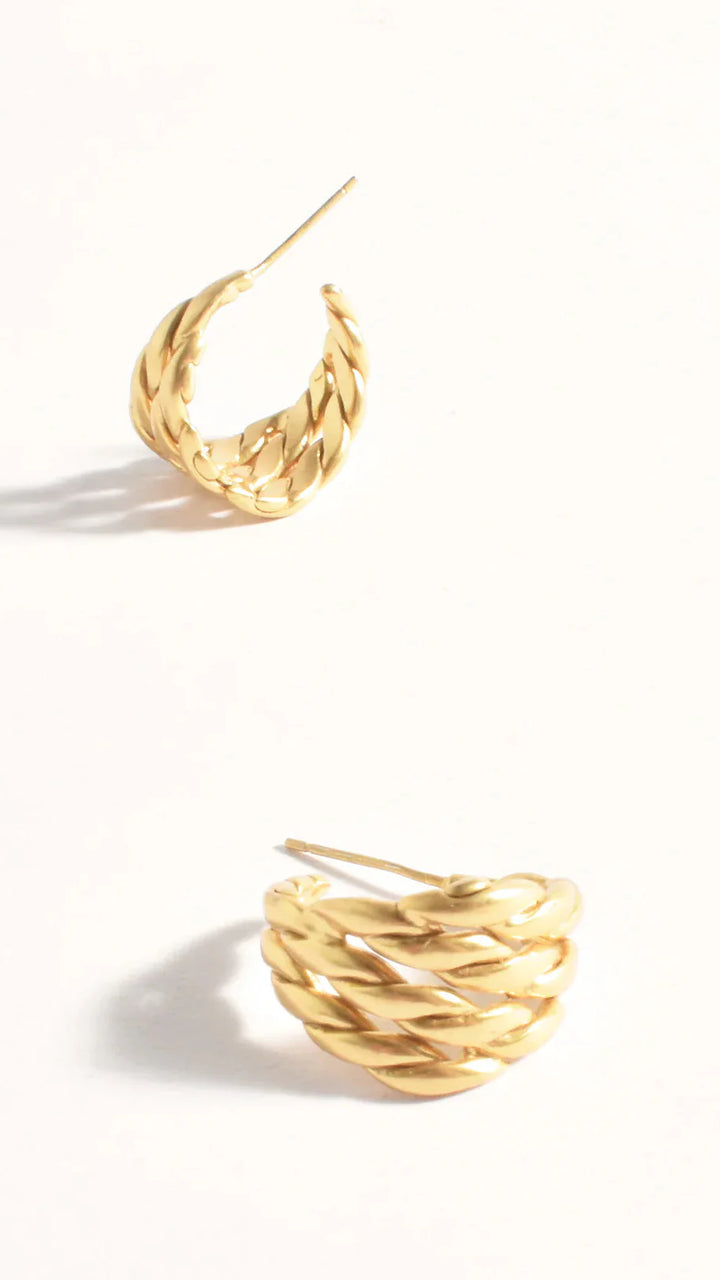 Bükülmüş Çok Katmanlı Halka Küpeler - Altın