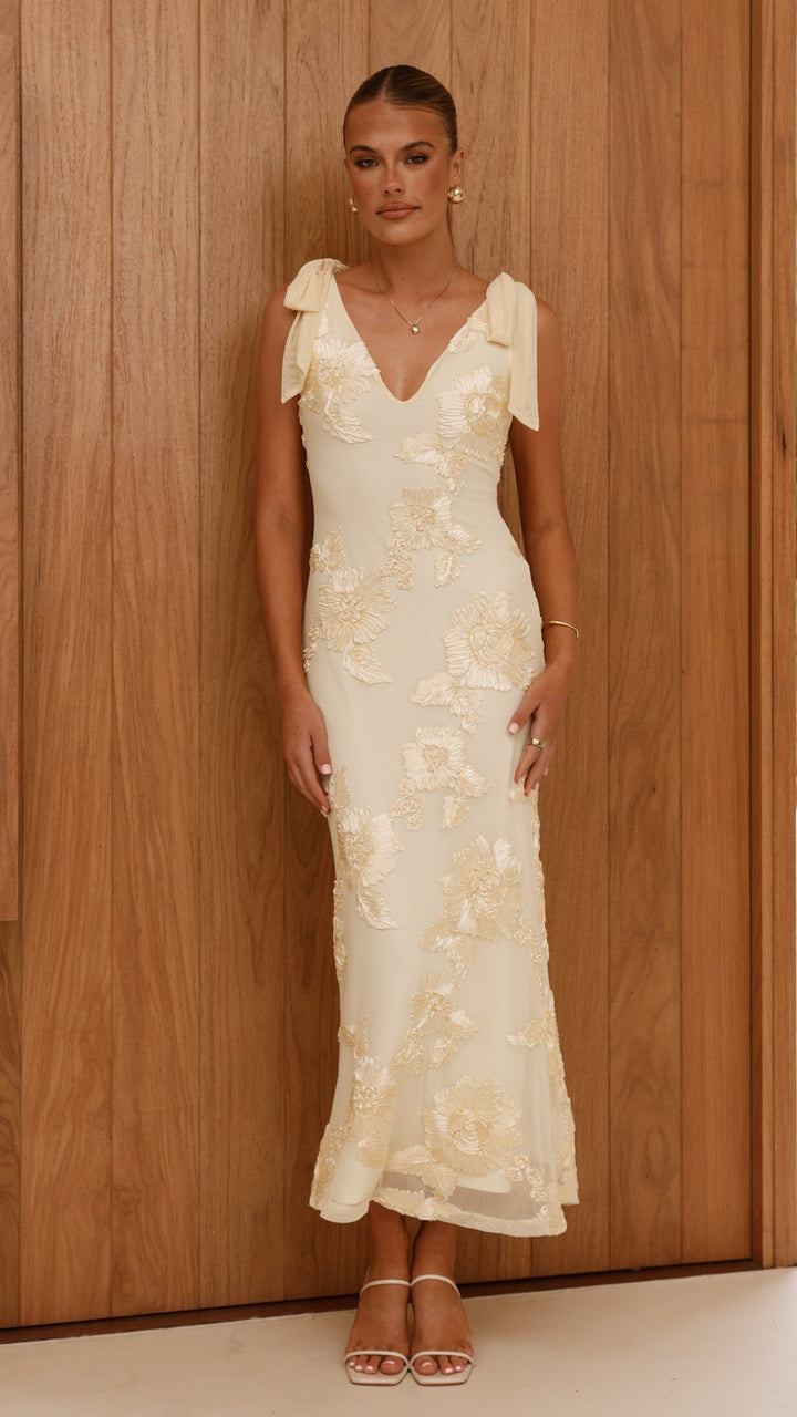 Usha Askılı Uzun Elbise - Sarı