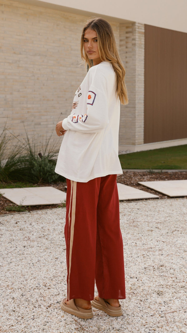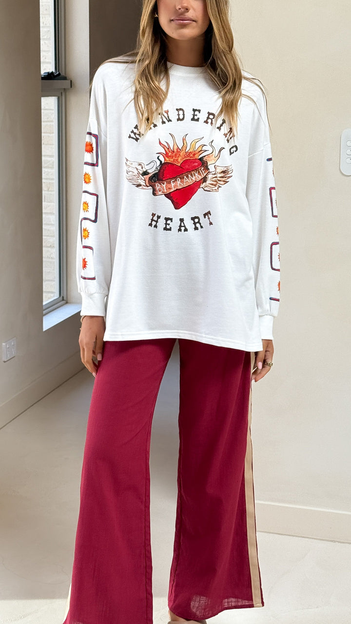 Wandering Heart Uzun Kollu Üst Ve Pantolon Takımı - Koyu Kırmızı